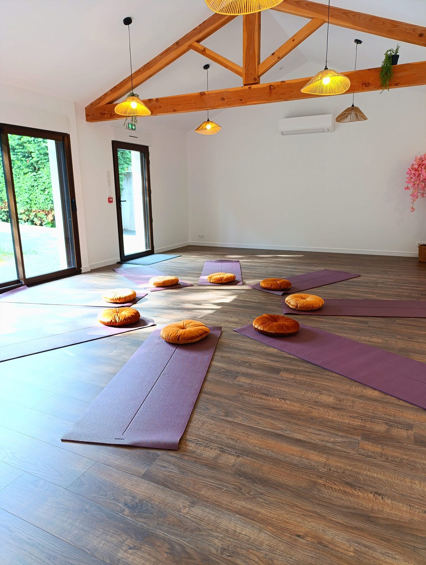 Vidéoprojecteur, connexion internet haut débit, tapis de yoga, coussins, 40 chaises et 8 tables, un paperboard…